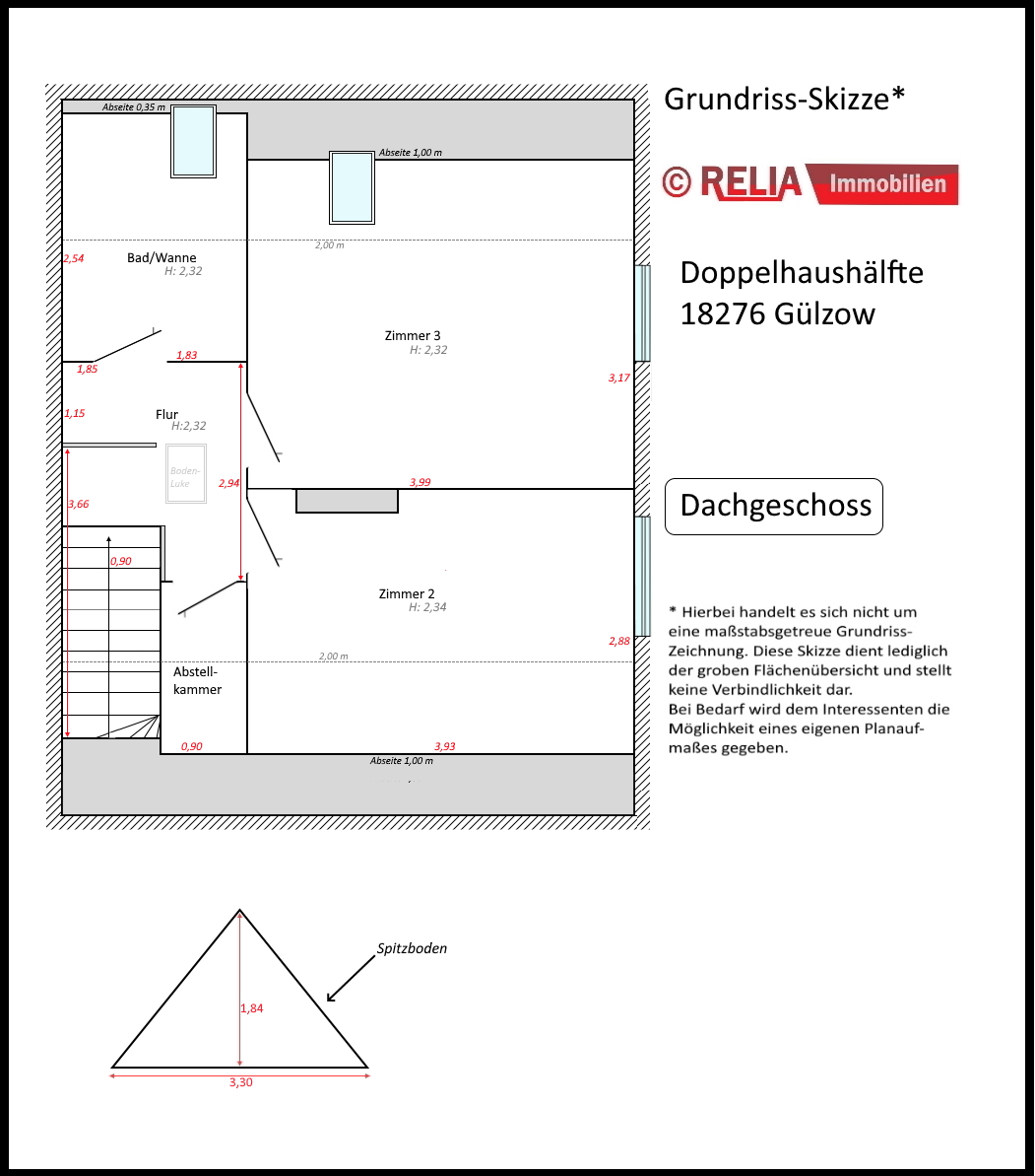 Die Firma RELIA Immobilien, Inh. Jens Blümel überprüfte diese Angaben lediglich auf Plausibilität und übernimmt hierfür keine weitergehende Haftung. Die Firma Relia Immobilien, Inh. Jens Blümel haftet bei Vorsatz und grober Fahrlässigkeit. Im Falle einfacher Fahrlässigkeit haftet die Firma RELIA Immobilien, Inh. Jens Blümel nur bei Verletzung wesentlicher Rechte und Pflichten, die sich nach dem Inhalt und Zweck des Maklervertrages ergeben. In diesem Fall ist die Haftung der Firma RELIA Immobilien, Inh. Jens Blümel auf den vorhersehbaren, vertragstypischen Schaden begrenzt. Diese Haftungsbeschränkungen gelten nicht für Schäden aus der Verletzung des Lebens, des Körpers oder der Gesundheit oder soweit eine Garantie übernommen wurde. Soweit die Schadensersatzhaftung der Firma RELIA Immobilien, Inh. Jens Blümel gegenüber ausgeschlossen oder beschränkt ist, gilt dies auch für eine persönliche Schadensersatzhaftung ihrer Arbeitnehmer, Mitarbeiter und Vertreter. Der Firma RELIA Immobilien, Inh. Jens Blümel ist es gestattet, auch für den Verkäufer provisionspflichtig tätig zu werden.