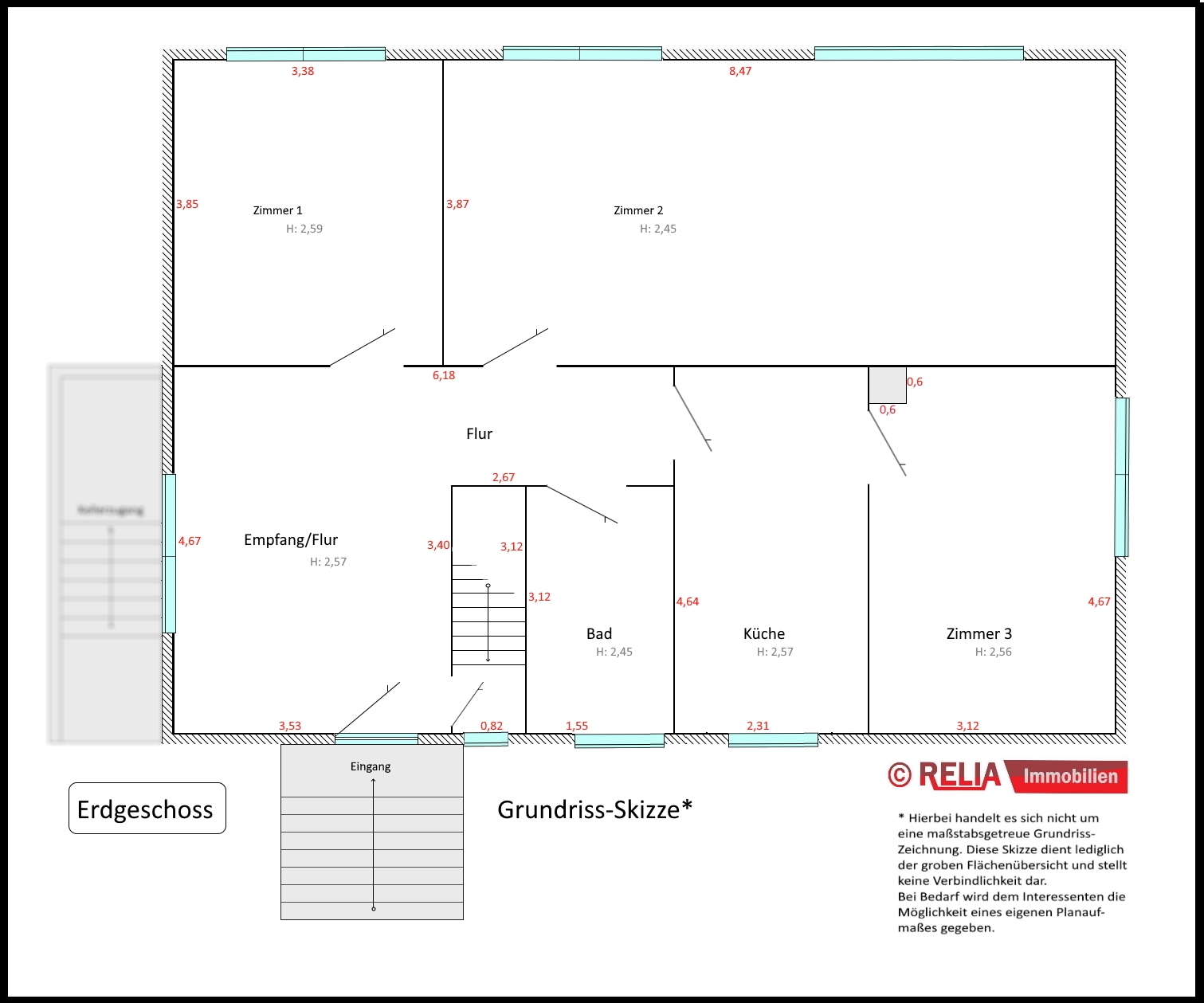 Die Firma RELIA Immobilien, Inh. Jens Blümel überprüfte diese Angaben lediglich auf Plausibilität und übernimmt hierfür keine weitergehende Haftung. Die Firma Relia Immobilien, Inh. Jens Blümel haftet bei Vorsatz und grober Fahrlässigkeit. Im Falle einfacher Fahrlässigkeit haftet die Firma RELIA Immobilien, Inh. Jens Blümel nur bei Verletzung wesentlicher Rechte und Pflichten, die sich nach dem Inhalt und Zweck des Maklervertrages ergeben. In diesem Fall ist die Haftung der Firma RELIA Immobilien, Inh. Jens Blümel auf den vorhersehbaren, vertragstypischen Schaden begrenzt. Diese Haftungsbeschränkungen gelten nicht für Schäden aus der Verletzung des Lebens, des Körpers oder der Gesundheit oder soweit eine Garantie übernommen wurde. Soweit die Schadensersatzhaftung der Firma RELIA Immobilien, Inh. Jens Blümel gegenüber ausgeschlossen oder beschränkt ist, gilt dies auch für eine persönliche Schadensersatzhaftung ihrer Arbeitnehmer, Mitarbeiter und Vertreter. Der Firma RELIA Immobilien, Inh. Jens Blümel ist es gestattet, auch für den Verkäufer provisionspflichtig tätig zu werden.