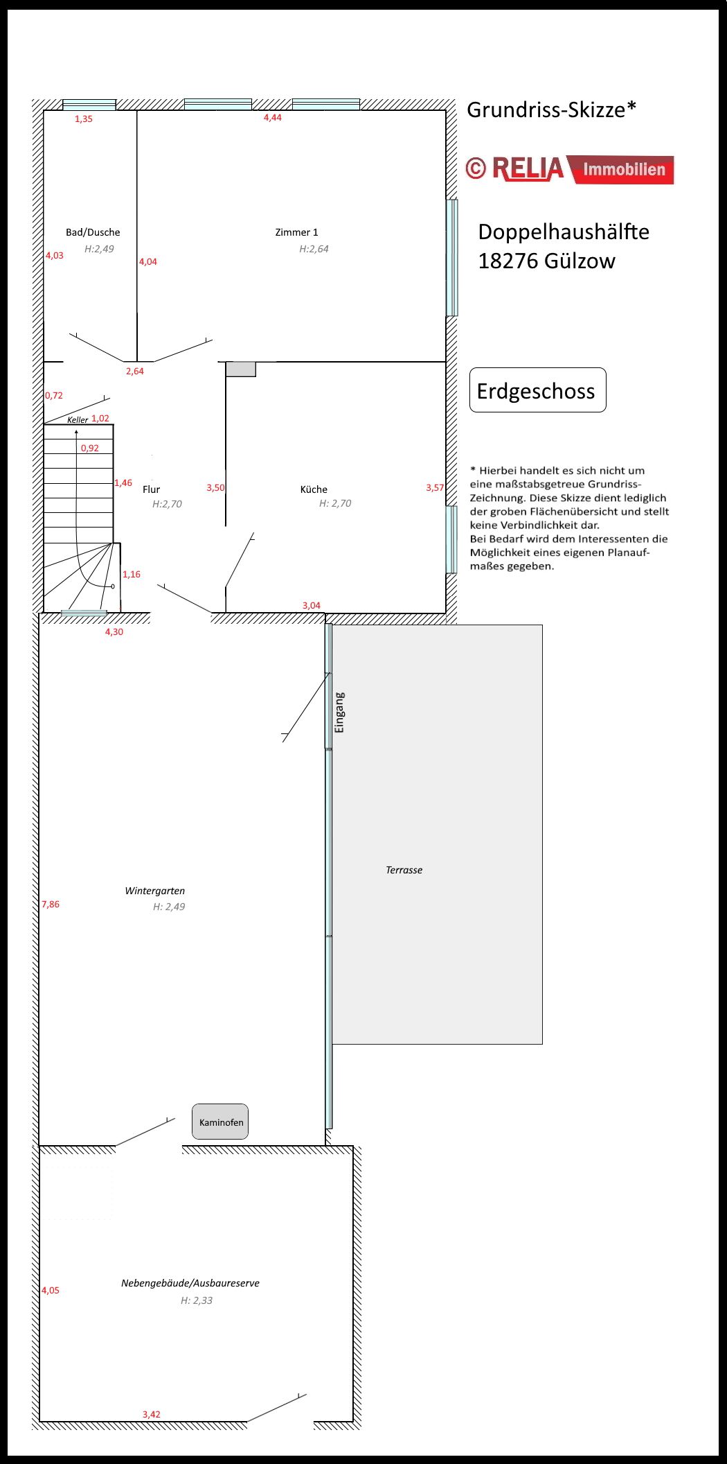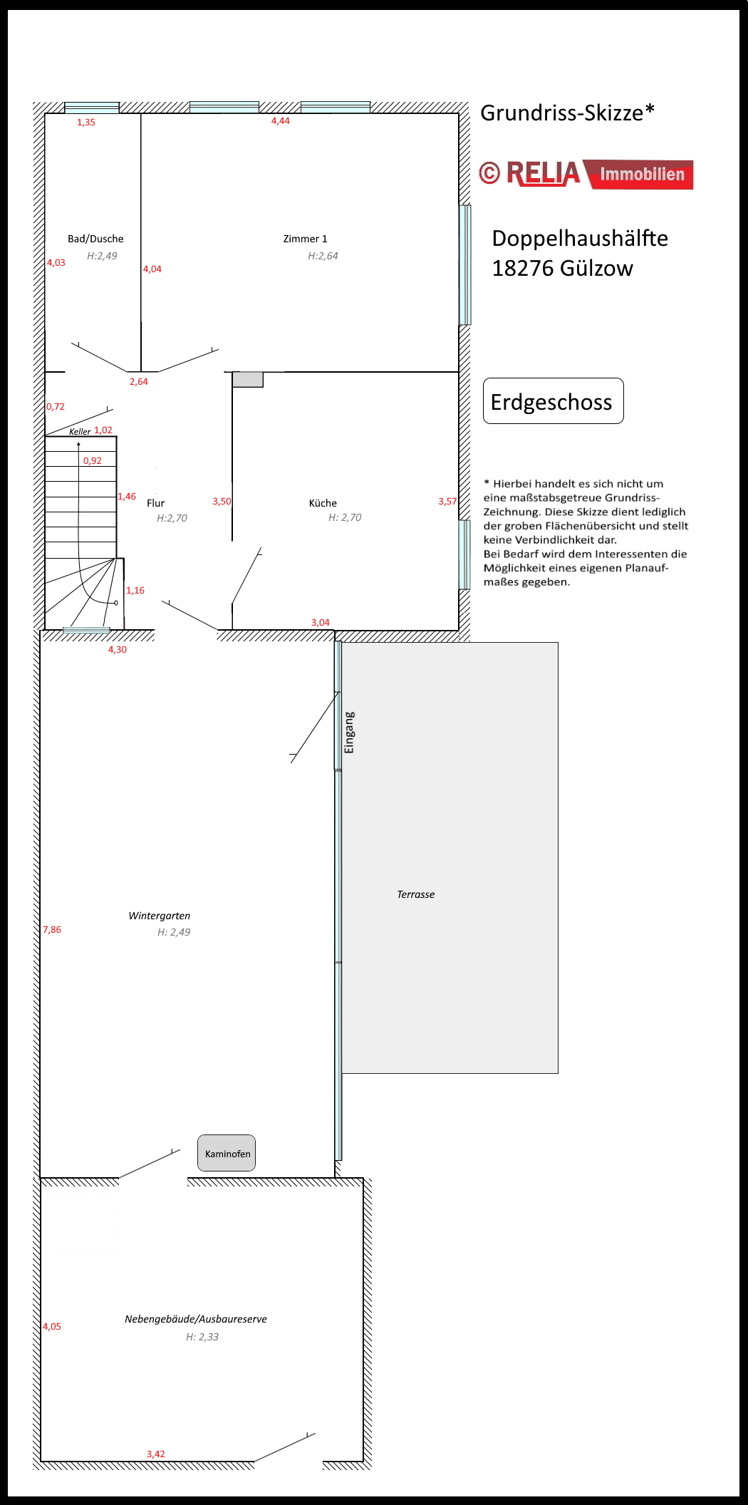 Die Firma RELIA Immobilien, Inh. Jens Blümel überprüfte diese Angaben lediglich auf Plausibilität und übernimmt hierfür keine weitergehende Haftung. Die Firma Relia Immobilien, Inh. Jens Blümel haftet bei Vorsatz und grober Fahrlässigkeit. Im Falle einfacher Fahrlässigkeit haftet die Firma RELIA Immobilien, Inh. Jens Blümel nur bei Verletzung wesentlicher Rechte und Pflichten, die sich nach dem Inhalt und Zweck des Maklervertrages ergeben. In diesem Fall ist die Haftung der Firma RELIA Immobilien, Inh. Jens Blümel auf den vorhersehbaren, vertragstypischen Schaden begrenzt. Diese Haftungsbeschränkungen gelten nicht für Schäden aus der Verletzung des Lebens, des Körpers oder der Gesundheit oder soweit eine Garantie übernommen wurde. Soweit die Schadensersatzhaftung der Firma RELIA Immobilien, Inh. Jens Blümel gegenüber ausgeschlossen oder beschränkt ist, gilt dies auch für eine persönliche Schadensersatzhaftung ihrer Arbeitnehmer, Mitarbeiter und Vertreter. Der Firma RELIA Immobilien, Inh. Jens Blümel ist es gestattet, auch für den Verkäufer provisionspflichtig tätig zu werden.